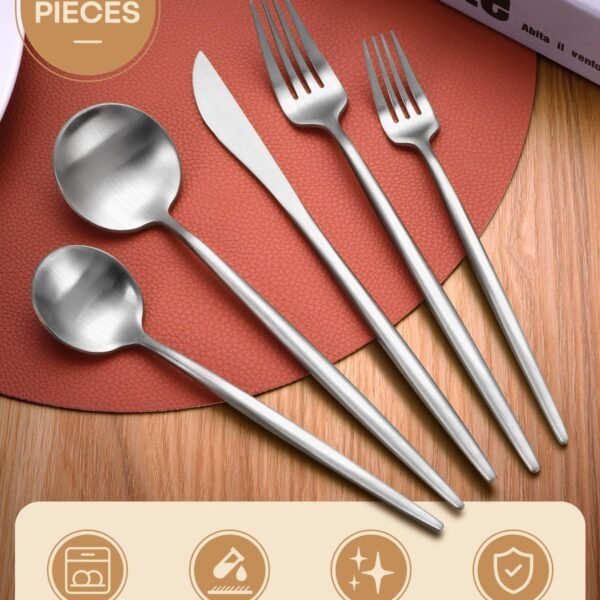 60-Piece Silverware Set for 12, Food-Grade Stainless Silver Flatware Set Include Spoons Forks Knives Matte Utensil Cutlery Set,Satin Finished & Dishwasher Safe