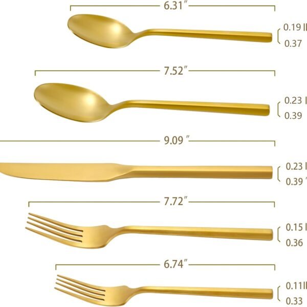 Silverware Set Flatware Set Matte Gold Cutlery Set Brushed Brass Heavy Hexagon Handle Stainless Steel 40 Pieces Dishwasher Safe Service for 8