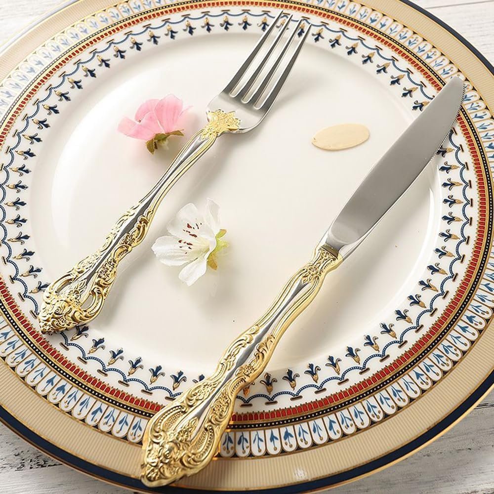 - ????VINTAGE AND LUXURY??: The handles of this gorgeous Dinner Forks are designed with totem work for a unique and elegant look that reflects the owner’s desire for a better life. The gold tableware is even more eye-catching and will decorate your table, combining elegance with practicality.
