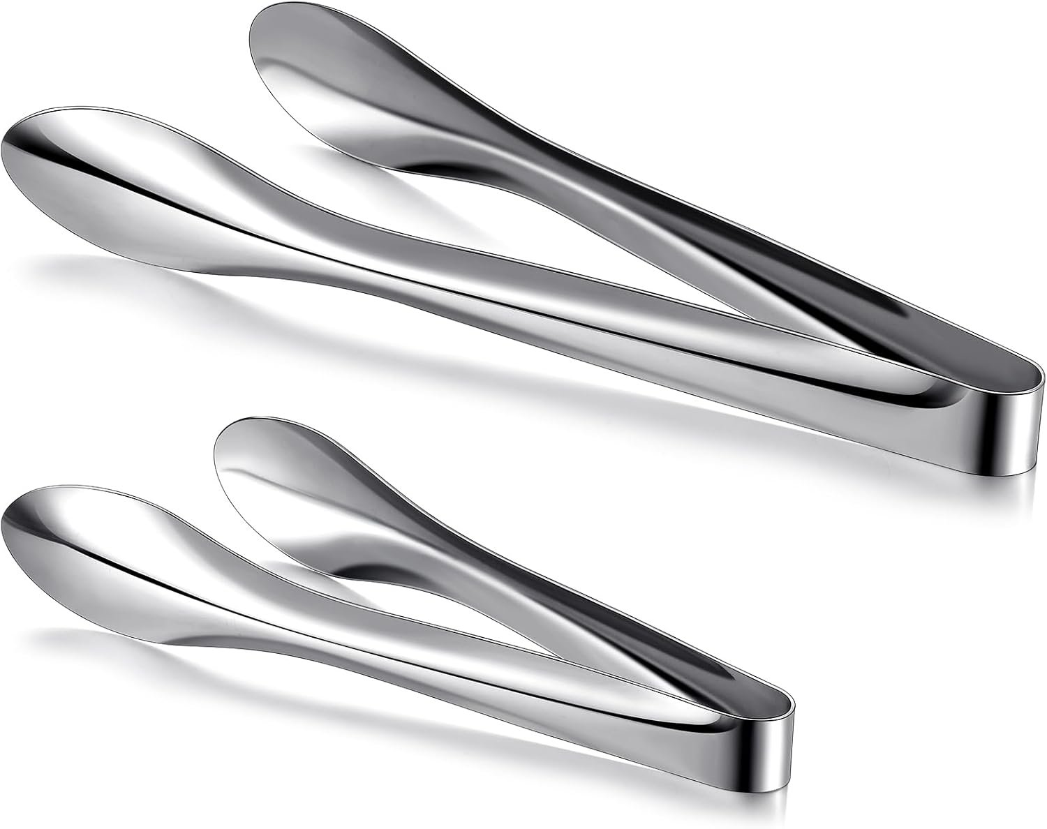 - 2 Piece Set in 9 Inch and 12 Inch:each package includes one 9 inch and one 12 inch serving tong, covering both close range plating and deep reach grilling needs; The 12 inch size provides a safe distance when reaching into ovens or over grills, while the 9 inch option works well for salad, appetizers, and table side serving; Please rinse with clean water before first use due to the polishing process